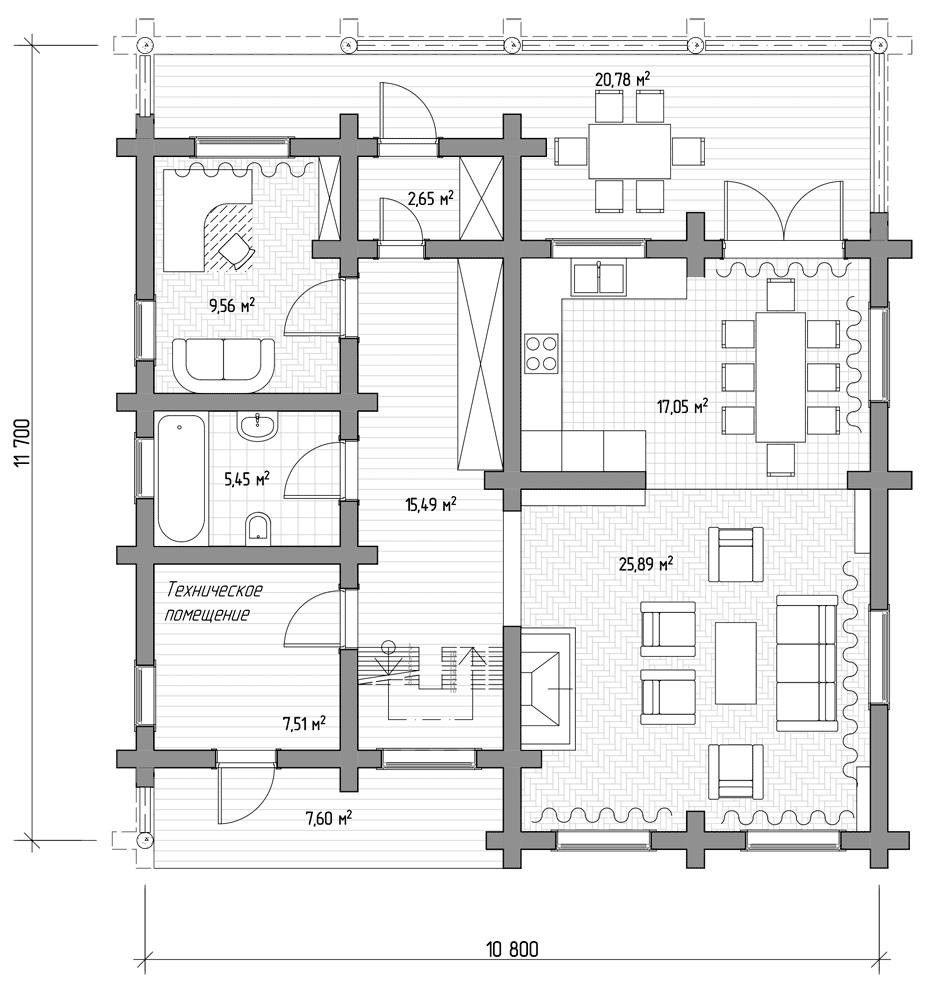 Проект будинку 42H: дерев'яний будинок із колоди під ключ